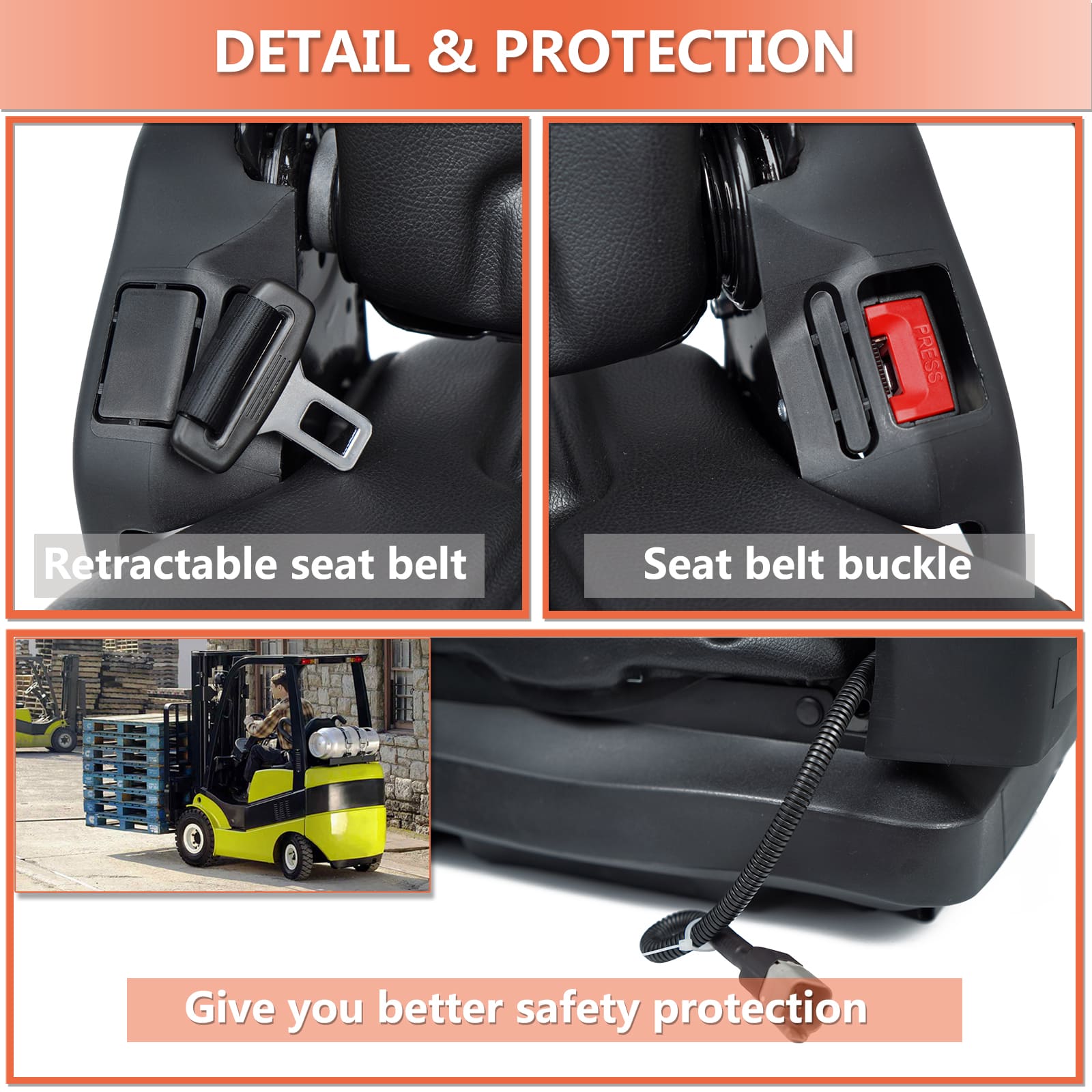 - 【Safe】Retractable seat belt.Contains Operator pressure sensor.