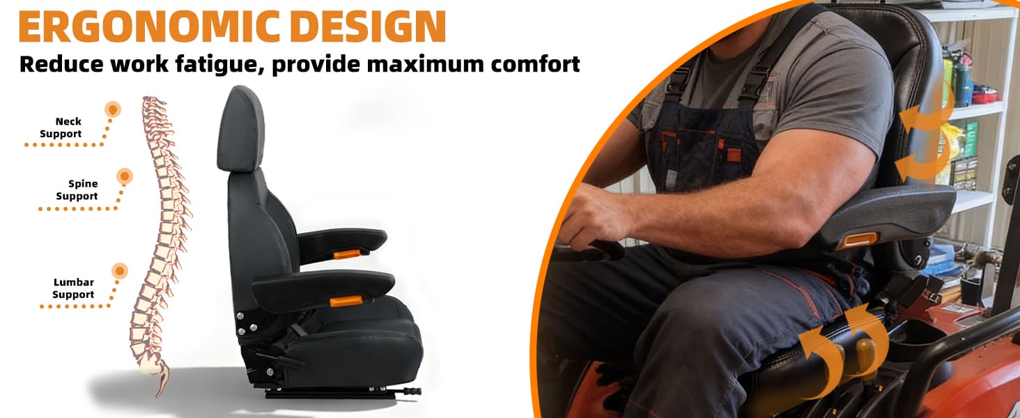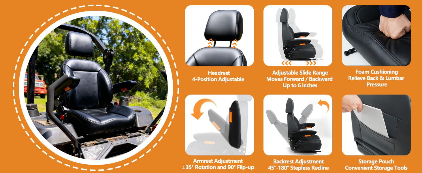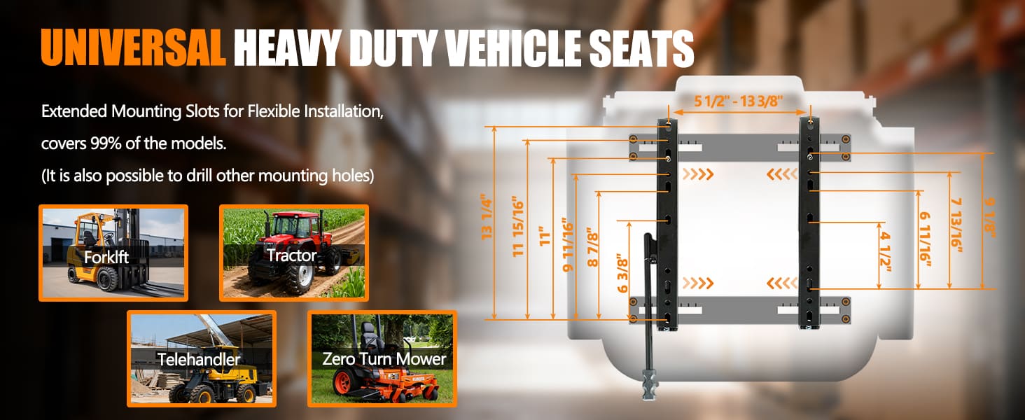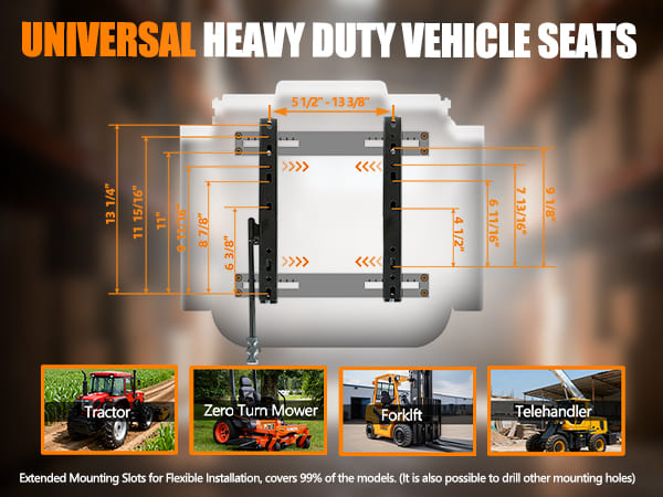 - 【Universal Agricultural Machinery Seats】This suspension seat is designed for most heavy mechanical seats, such as fork lifts, dozers, aerial lifts, floor scrubbers, riding mowers, tractors, excavators, and trenches.
