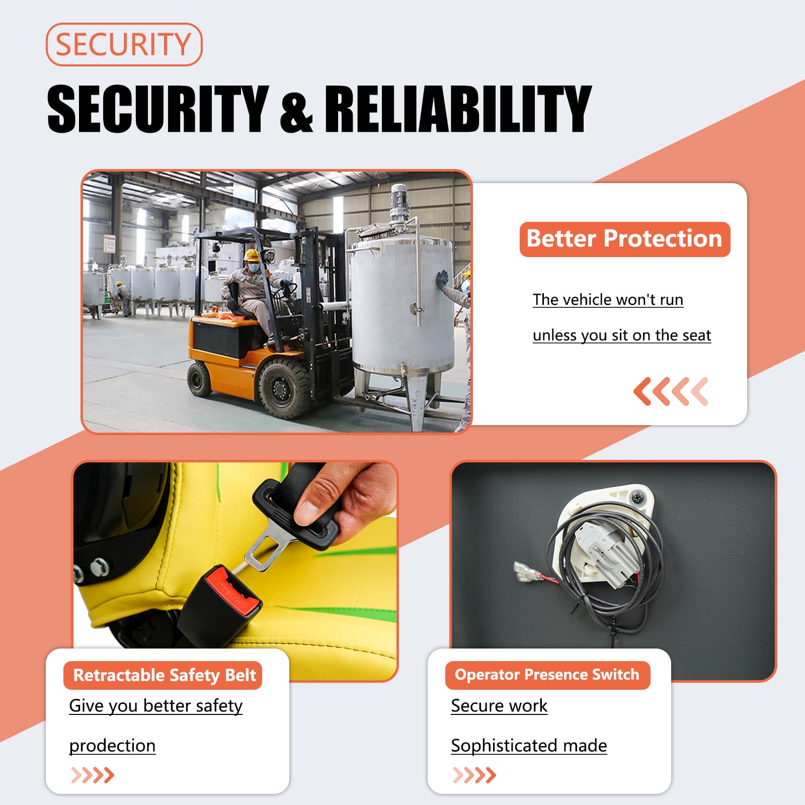 - 【Safe & Convenient】Tractor seat replacement with retractable seat belt and contains an operator pressure sensor(micro switch), An attached file bag can be used to store documents and portable repair tools.
